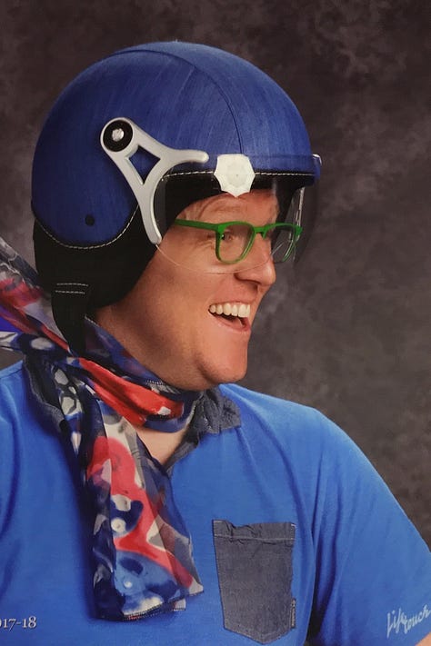 Every year, when the yearbooks are handed out, I get a flood of students coming and pointing at my picture and laughing. With a smile on their face, “Mr. Kemp, what are you doing?”